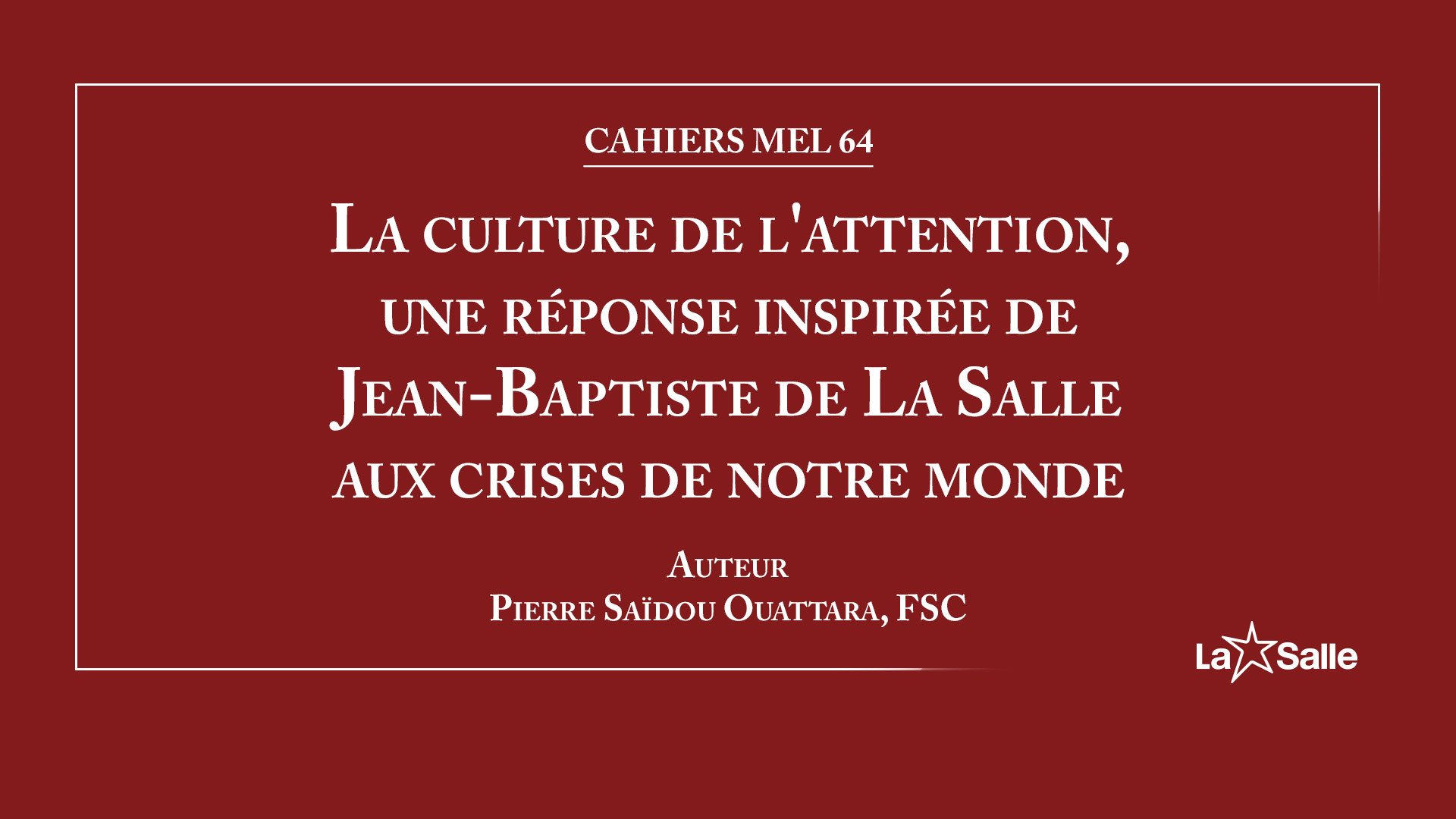 • Cahiers MEL 64 La culture de l’attention, une réponse inspirée de Jean-Baptiste de La Salle aux crises de notre monde