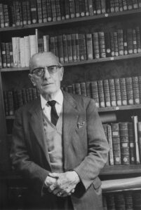 M. André Gazier à la Bibliothèque de Port-Royal à Paris” (1979). Fotografia [B/N] – mm. 180×120 Archivio Frére Marcel Martinais, Roma
