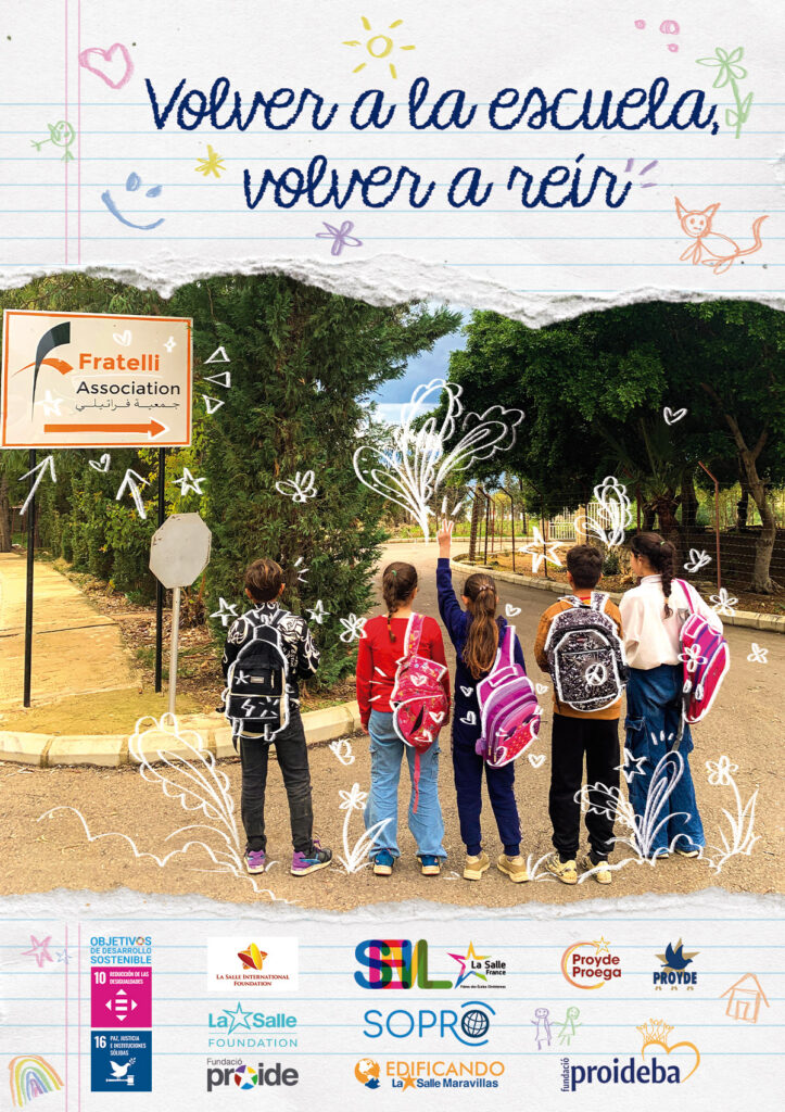En línea con los Objetivos de Desarrollo Sostenible (ODS), La Salle Foundation junto con las ONG lasalianas del Distrito Arlep —PROYDE, PROIDE, PROIDEBA, PROEGA y SOPRO—, proponen la campaña “volver a la escuela, volver a reír”, enfatizando la necesidad de reducir las desigualdades (ODS 10) y de apostar por paz, justicia e instituciones sólidas (ODS 16).